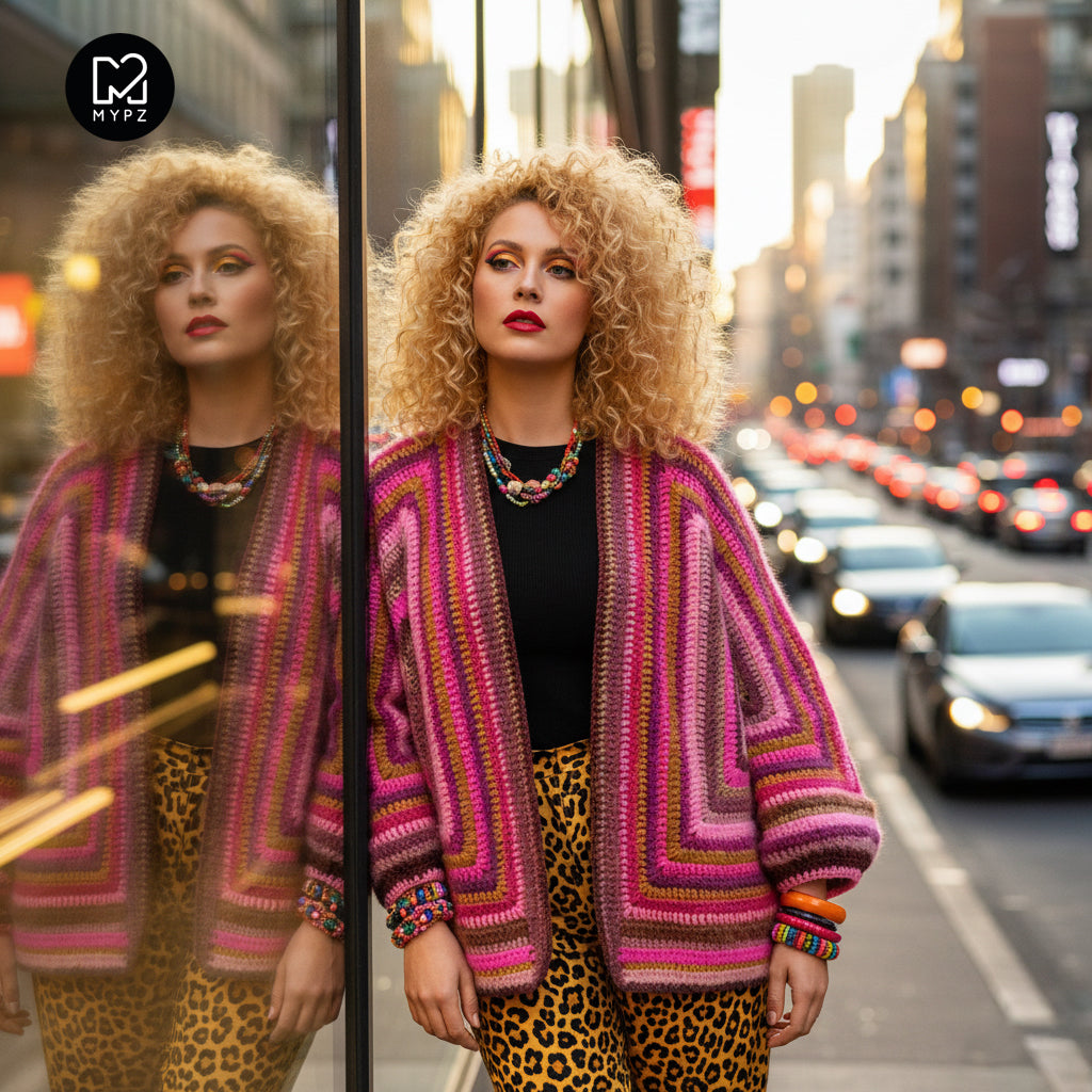 You crochet this cardigan with 1 strand MYPZ Chunky Kidmohair DK or 1 strand MYPZ Super Soft Merino.