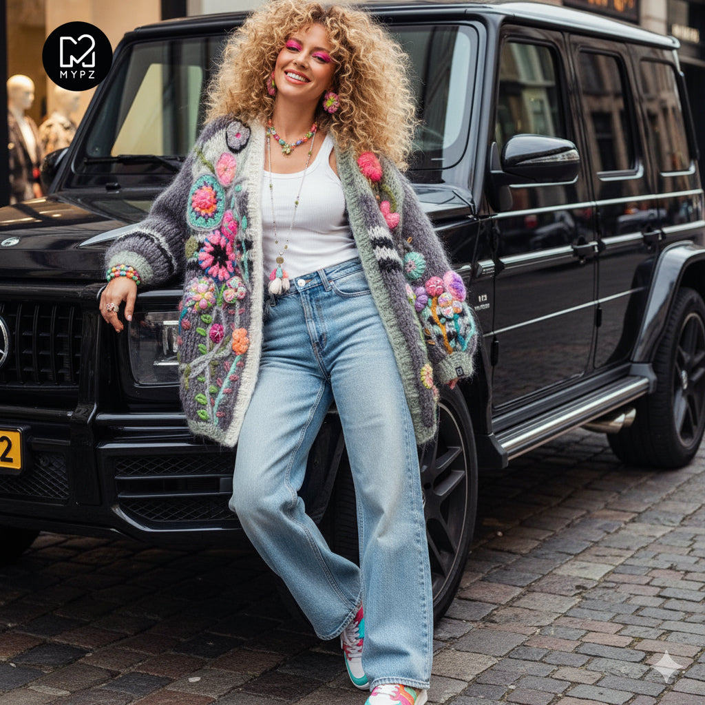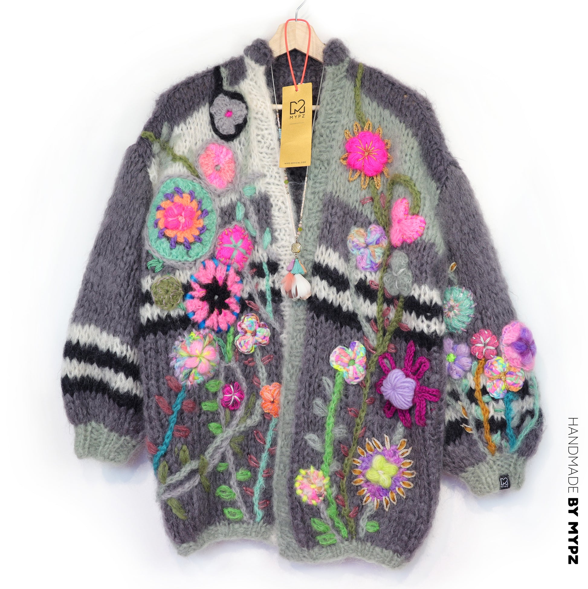 This is a handmade knit made by MYPZ in The Netherlands. Each cardigan or sweater is a unique piece and we take a lot of time and care to create these beautiful products. This beautiful sweater is made of a high quality mohair and does not pill. It is very light, warm and comfortable. These brushed yarns may shed a little but after a while, this will subside.