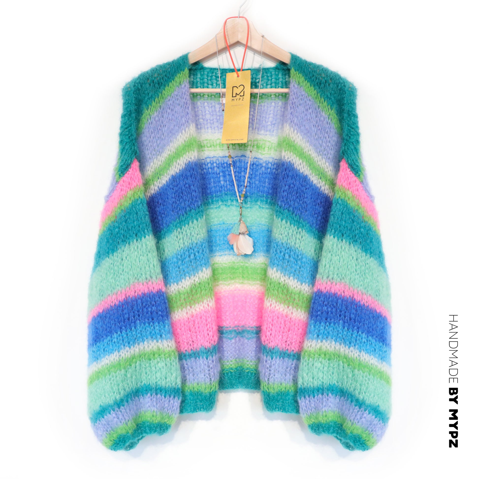 HANDMADE WITH LOVE BY MYPZ | This is a unique handmade luxury mohair cardigan. This beautiful cardigan is made of a high quality kidmohair and does not pill. It is very light, warm and comfortable. These brushed yarns may shed a little but after the first or two washes, this will subside.