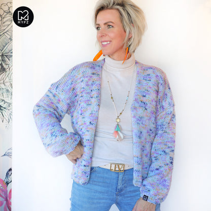 Garen: Dit vest is gebreid met 1 draad MYPZ MYPZ hand-dyed Alpaca Silk + 1 draad MYPZ Super Soft Merino, ideaal voor mensen met een gevoelige huid!
